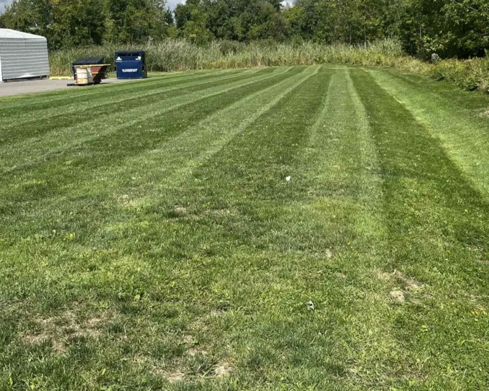Yes. We handle large properties, open fields, and HOA common areas using commercial zero-turn mowers and experienced crews.